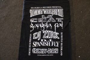 T-Shirt from our 2025 event “Memphis Rap OGz,” which took place on Halloween night (October 31) at Minglewood Hall. The bill included Memphis rap legends Tommy Wright III, La’ Chat, Gangsta Pat, DJ Zirk, DJ Spanish Fly, and Crunchy Black, and they are featured on the back of the shirt design.